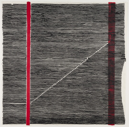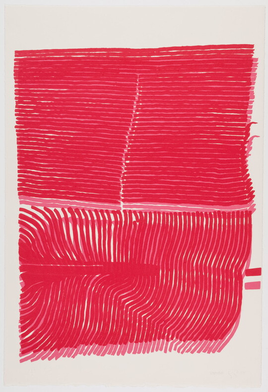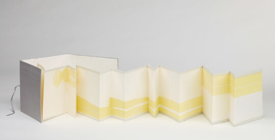 Continuous four-part folding lithograph tipped into a three-part wraparound binding, covered in gray silk 1966.292