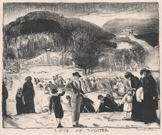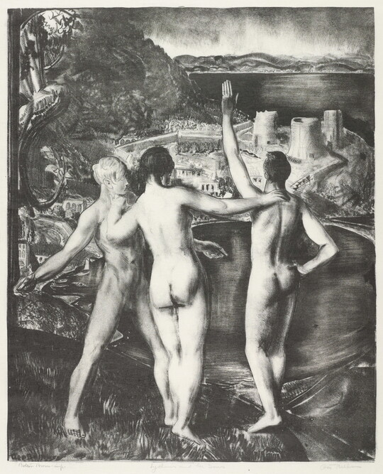 A brash young baseball player from Ohio, George Bellows moved to New York in 1904 to become a painter. After studying with Robert Henri and a group of realist artists who came to be known as the Ashcan School, Bellows established his reputation with gritty depictions of modern life in New York City, and with vibrant seascapes that capture the ocean’s vastness, power, and beauty. In addition to Bellows’ 1917 seascape The Fisherman, the Carter is home to the largest collection of Bellows’ prints: a master set of 220 works—219 lithographs and one etching—acquired from the artist’s estate in 1985. This master set represents the full range of Bellows’ output as a printmaker and includes depictions of athletes, boxing matches, religious gatherings, street children, tenements, and warfare, as well as intimate nude studies and portrait renderings.