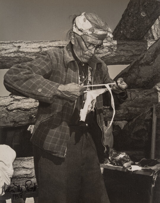 Post had a short and focused career as a photographer. She had grown up in an artistic family and, with her sister, Marion Post Wolcott, spent time in Austria studying with famed Viennese photographer Trude Fleischmann. In 1935, the rising danger of prewar Europe sent the women home, where they each pursued photography as a career. Post did some freelance work before finding her primary subject: southwestern Indigenous communities. She ultimately created thousands of images of Jicarilla Apache, Diné (Navajo), Hopi, and people from other Nations. Post’s work gained some notice among White Americans interested in Indigenous life—purchased by the Bureau of Indian Affairs and used to illustrate books like anthropologist Oliver La Farge’s As Long as the Grass Shall Grow (1940)—but she stopped photographing around 1941.