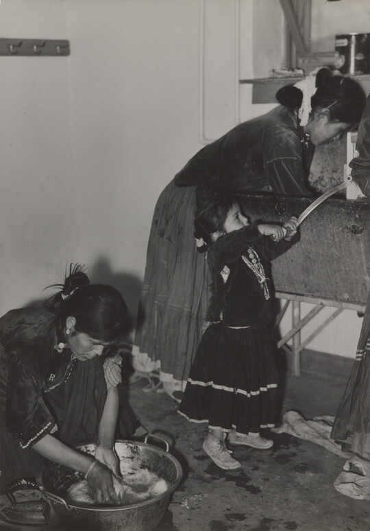 Post had a short and focused career as a photographer. She had grown up in an artistic family and, with her sister, Marion Post Wolcott, spent time in Austria studying with famed Viennese photographer Trude Fleischmann. In 1935, the rising danger of prewar Europe sent the women home, where they each pursued photography as a career. Post did some freelance work before finding her primary subject: southwestern Indigenous communities. She ultimately created thousands of images of Jicarilla Apache, Diné (Navajo), Hopi, and people from other Nations. Post’s work gained some notice among White Americans interested in Indigenous life—purchased by the Bureau of Indian Affairs and used to illustrate books like anthropologist Oliver La Farge’s As Long as the Grass Shall Grow (1940)—but she stopped photographing around 1941.