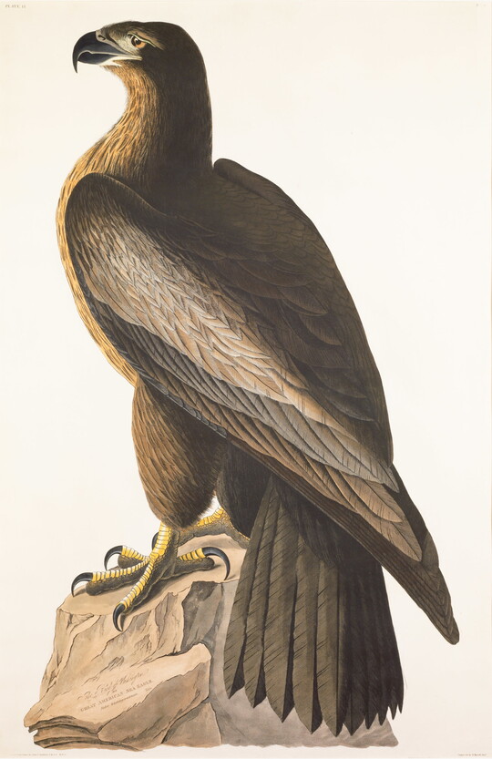After an unsuccessful career as a merchant in Kentucky, Audubon embarked on an ambitious new venture: The Birds of America (1827–38), a lavish folio of color prints of birds native to North America. Traveling across the present-day United States, he hunted thousands of birds, posing their bodies for life-size watercolor paintings that communicated key aspects of their appearance and behavior. These watercolors became the basis of 435 hand-colored engravings, which Audubon marketed to wealthy buyers in America and Europe.