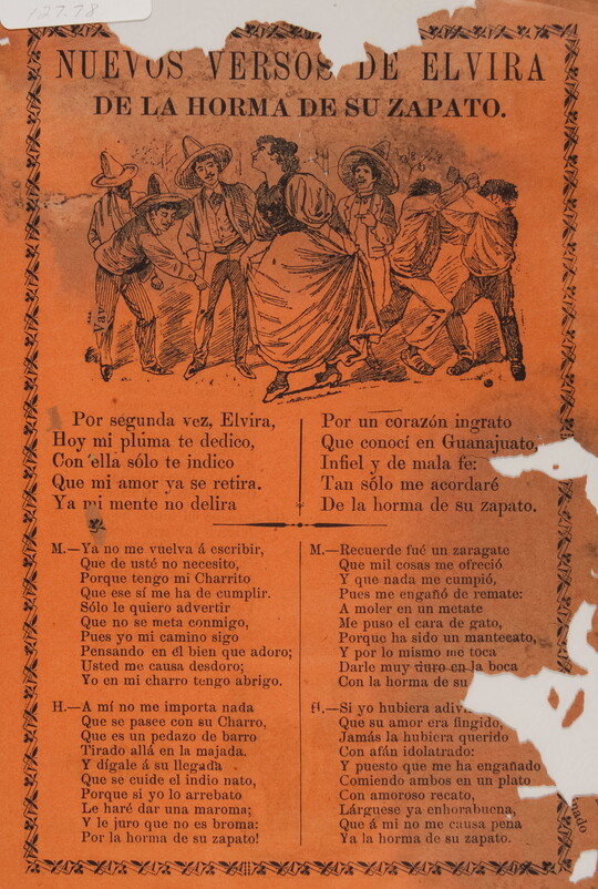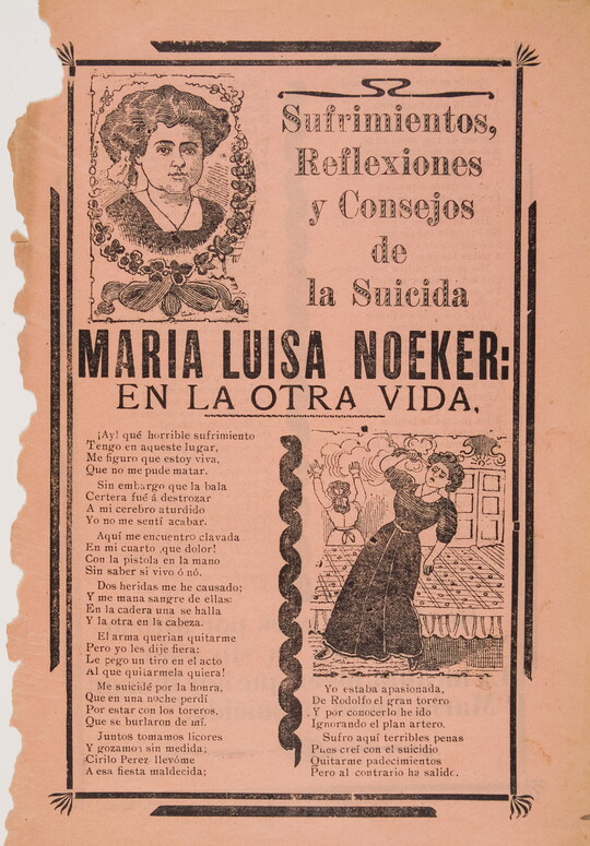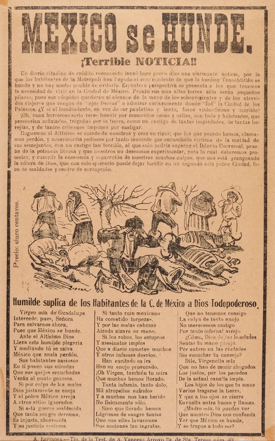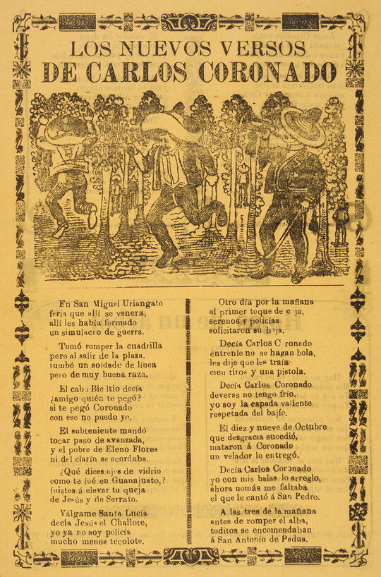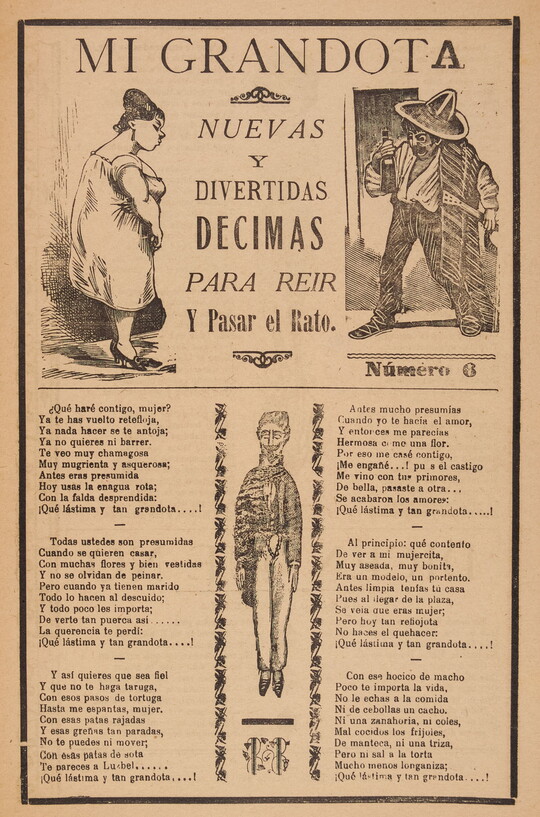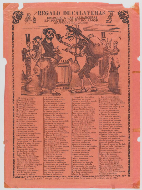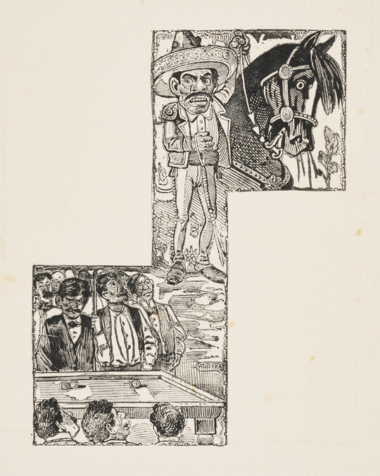 José Guadalupe Posada was a Mexican illustrator known for his satirical calaveras—illustrations featuring skeletons and skulls. Published throughout Mexico during the late 19th and early 20th centuries, Posada’s woodcuts and wood engravings appeared in inexpensive literature, most notably politically charged broadsides dealing with pressing political issues of the day. Following Posada’s death, his calaveras came to be associated with the celebrations of Día de Los Muertos (Day of the Dead). More than 400 of Posada’s works are in the Carter’s collection, including newspaper illustrations, broadsides, and a selection of his original printing blocks.