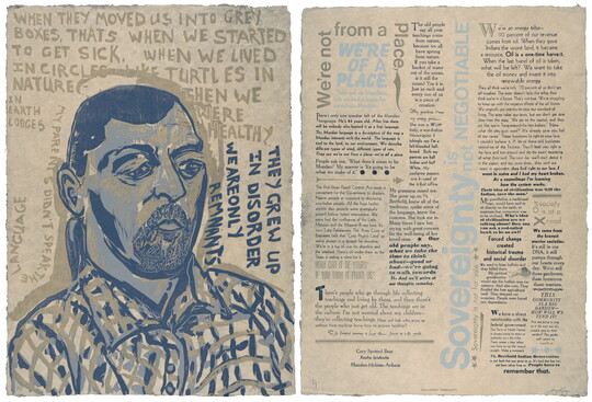 Color reduction woodcut and letterpress on handmade mulberry and North Dakota native milkweed paper 2017.2.1