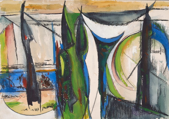 Opaque and transparent watercolor, pastel, ink with paper collage pieces 2019.12