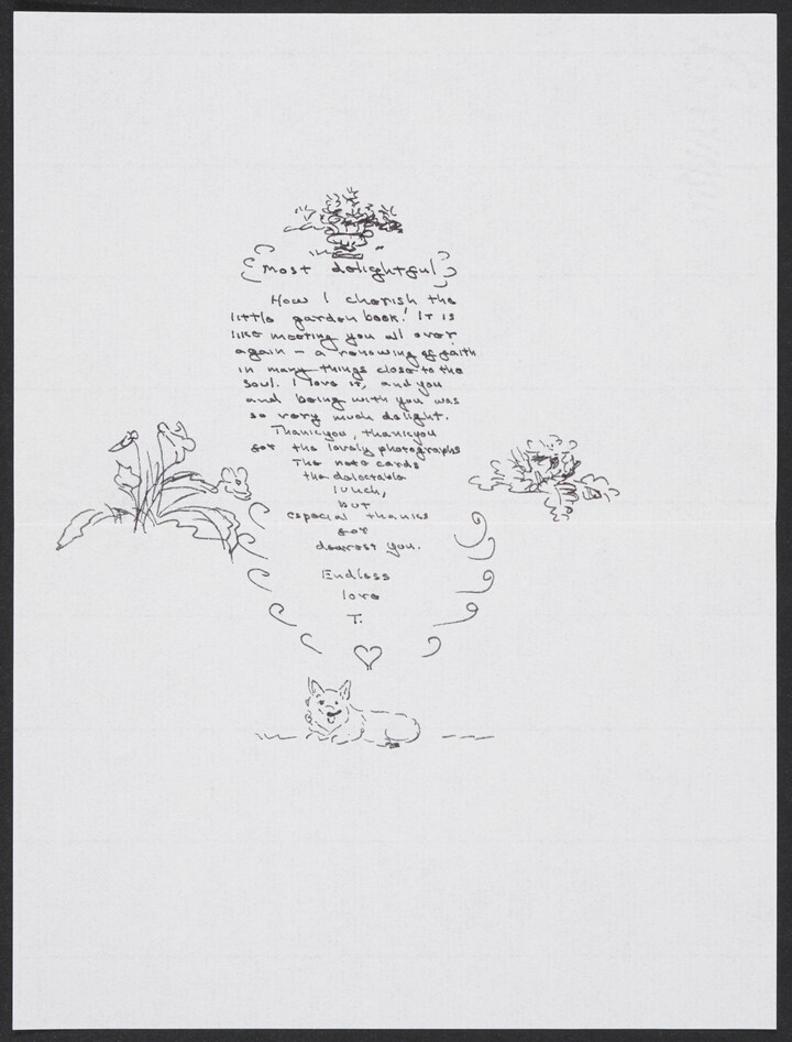 • Ephemera: including reviews of her art, tax returns, and clippings about Dorr and her friends Lillian Gish, Tasha Tudor, and John Howard Griffin