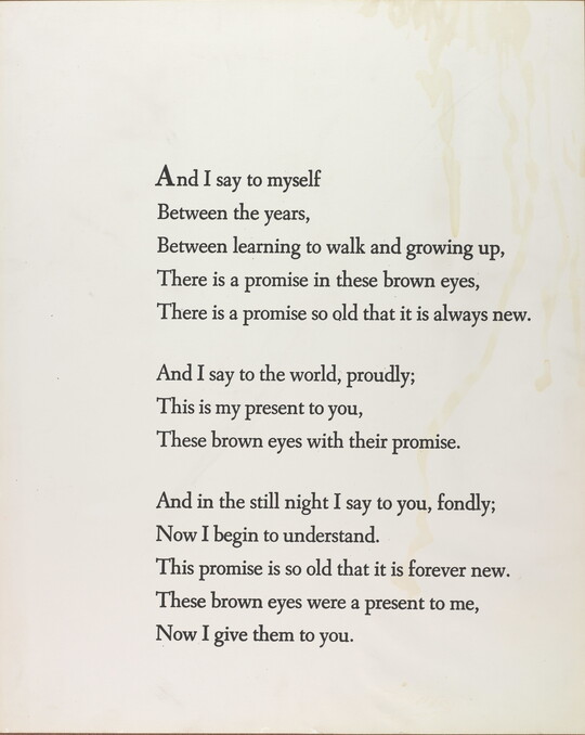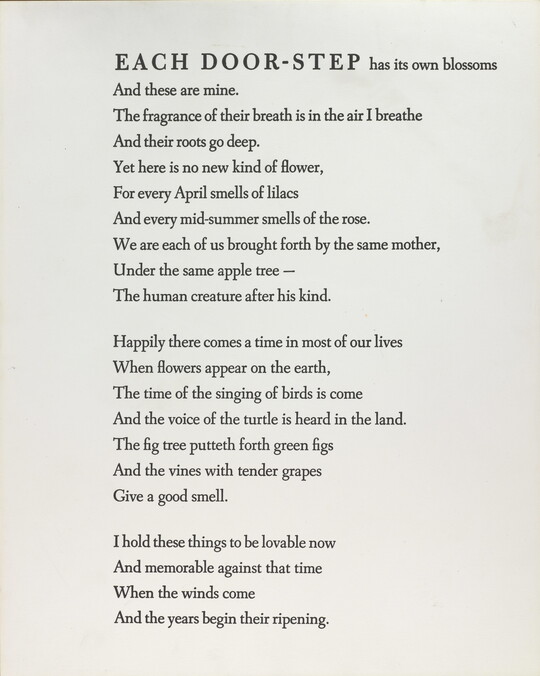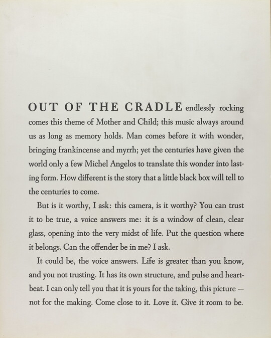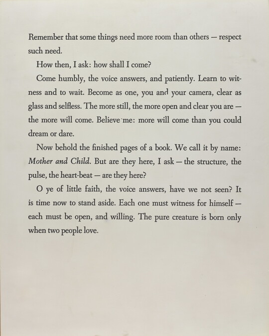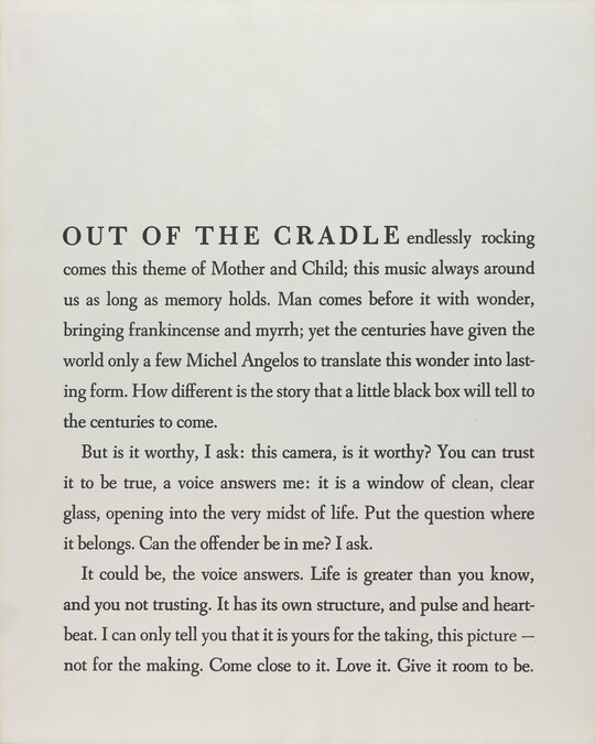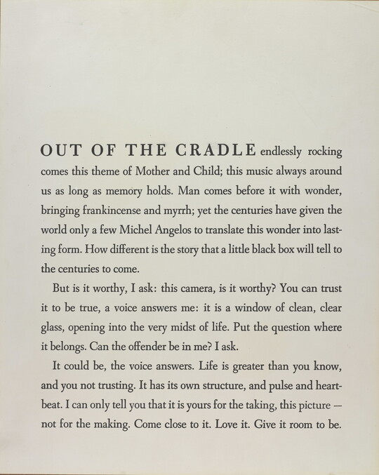 In the countryside Dorr photographed the women and children, creating beautiful and nostalgic images that avoid the fraught politics and events of the time. When one of her daughters died, Dorr published these images in an elegiac book called Mother and Child (1954), which would become her best-known work. Two years after Dorr died, the artist’s estate gifted her archive to the Carter, including thousands of photographs and negatives as well as the Nell Dorr Papers.
