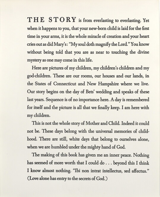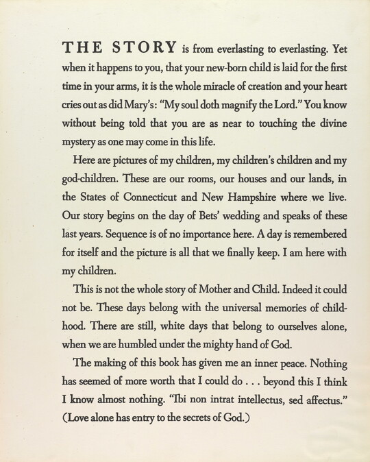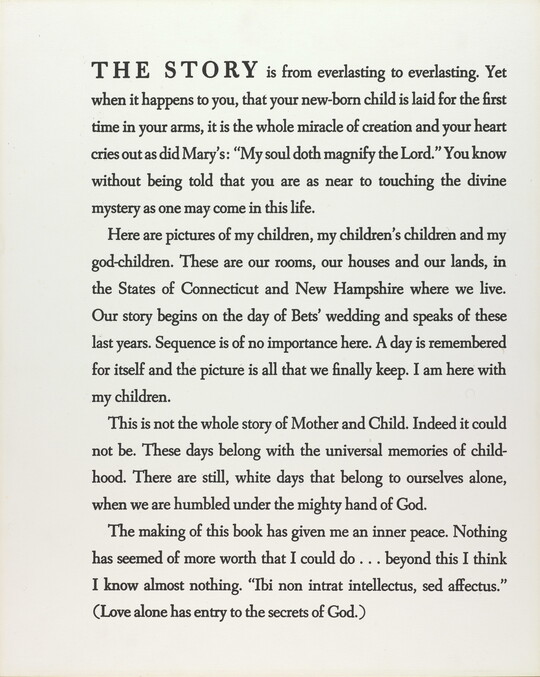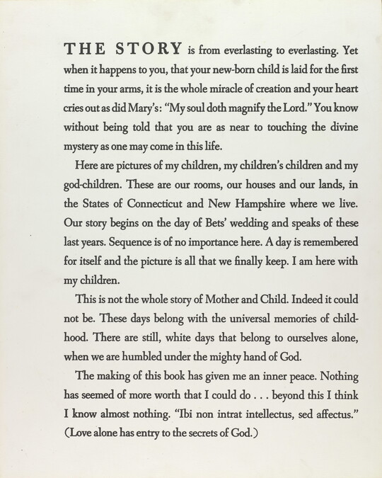In the countryside Dorr photographed the women and children, creating beautiful and nostalgic images that avoid the fraught politics and events of the time. When one of her daughters died, Dorr published these images in an elegiac book called Mother and Child (1954), which would become her best-known work. Two years after Dorr died, the artist’s estate gifted her archive to the Carter, including thousands of photographs and negatives as well as the Nell Dorr Papers.