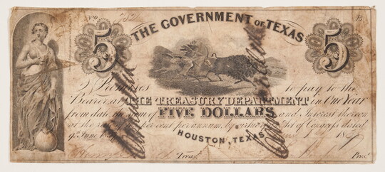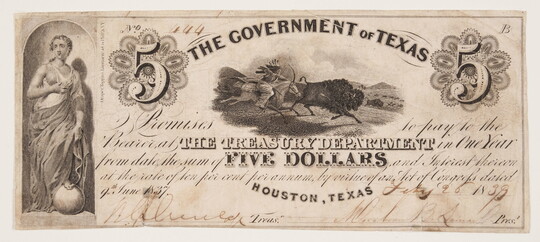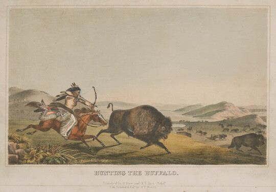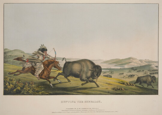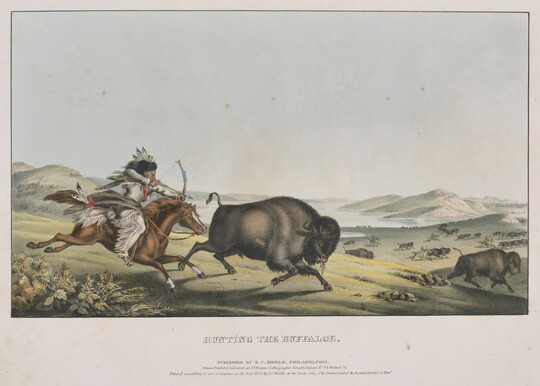 Rindisbacher witnessed the bison hunts that were so critical to the region’s foodways and cultures, and he captured this subject in drawings that he later made into watercolors. After his death at 28, one of his buffalo hunt images was reproduced on a five-dollar bank note for the Republic of Texas.