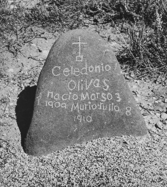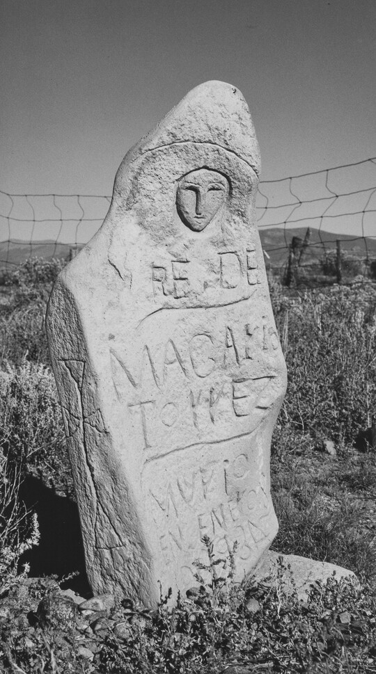 A Grave Marker of Brown Sandstone, Incorporating the Original Shape of the Rock, Trujillo Creek, Colorado, ca. 1965-1972