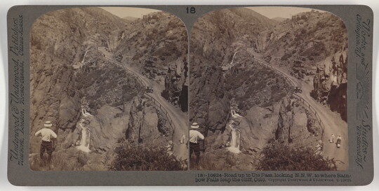Round up to Ute Pass, Looking N.N.W. to Where Rainbow Falls Leap the Cliff, Colo., ca. 1906