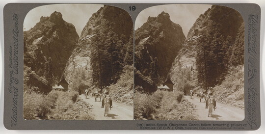 South Cheyenne Canon Below Towering Pillars of Hercules (W.S.W.), Colo., ca. 1906