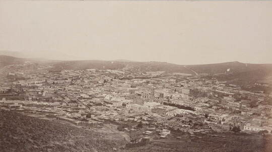 [American volunteer infantry standing along a street in Saltillo, Mexico], ca. 1847