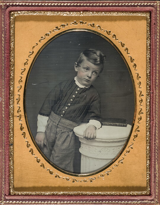 [Boy in white shirt seated, half-length], 1860s-1870s