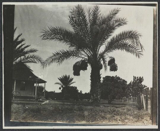 [Deadwood Dick standing outside log cabin], ca. 1927-1930
