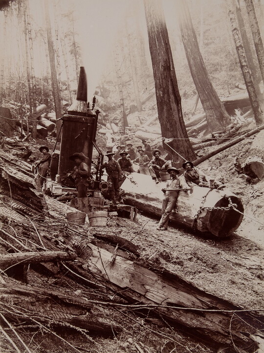 [Loggers posed with machinery and timbers], 1893
