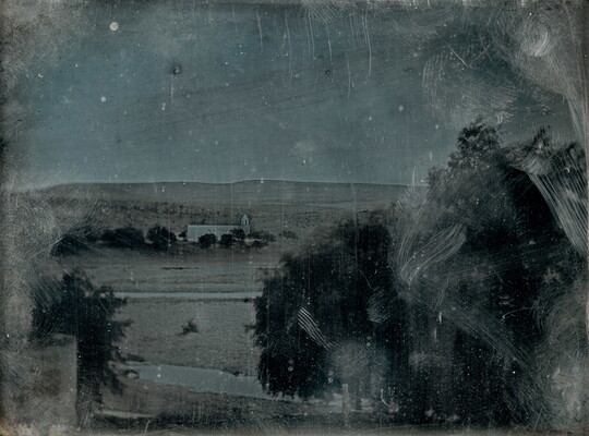 [Landscape, trees in foreground, church building in distance], ca. 1847