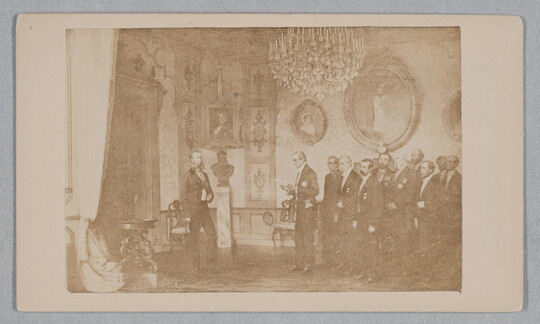 [Man reading statement to Maximilian and group], ca. 1867