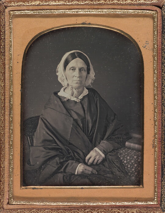[Older woman in dark dress with shawl-like collar], ca. 1850-1860