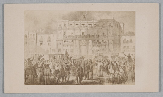 [Print of Maximilian and Carlotta in carriage surrounded by cheering crowd], ca. 1867
