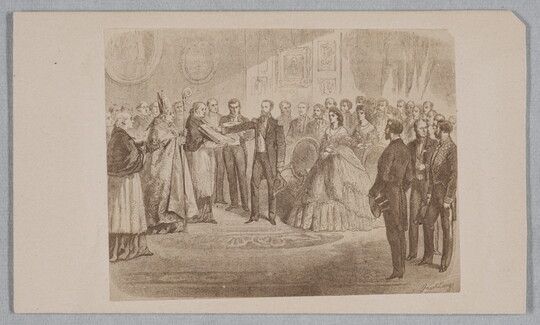 [Print of Maximilian and Carlotta having an audience with the Pope], ca. 1867