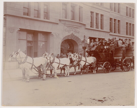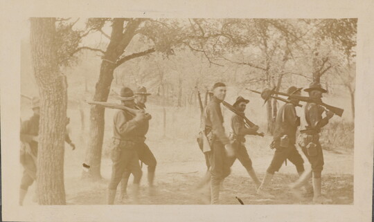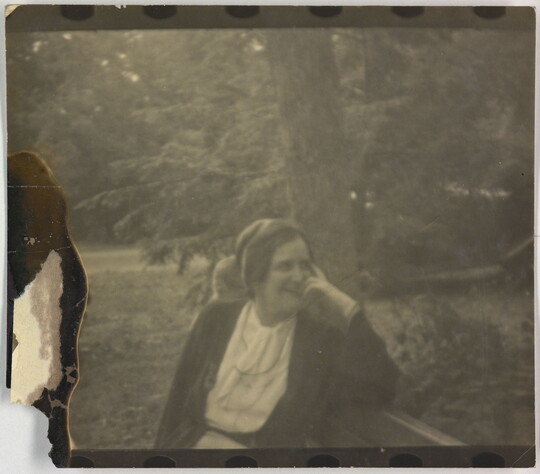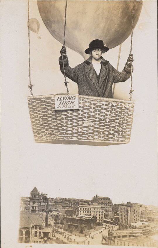 [Souvenir photo of woman in hot air balloon above Fort Worth], ca. 1910-1920