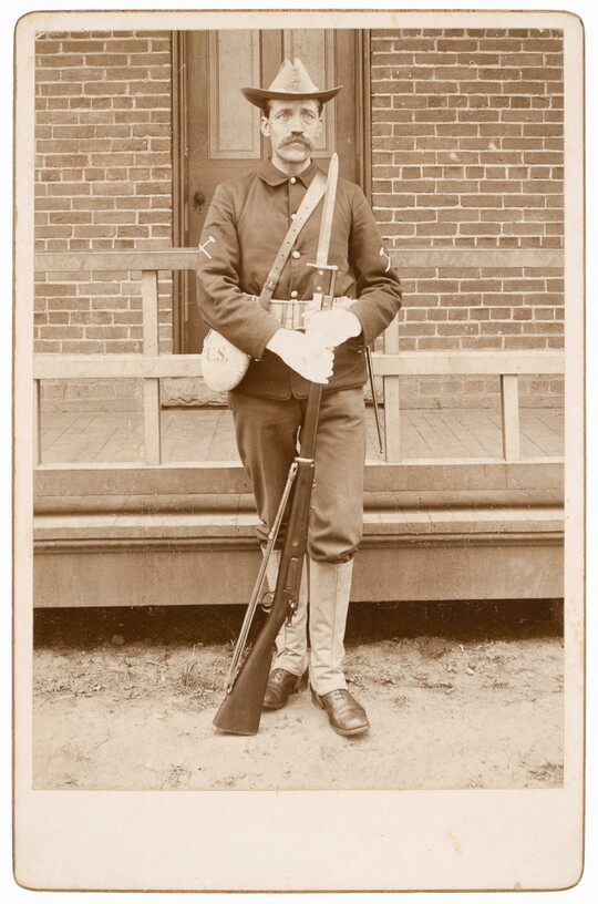 [Small boy, possibly Devizes Keans, standing with thumb in knickers pocket or flap, full-length], 1877