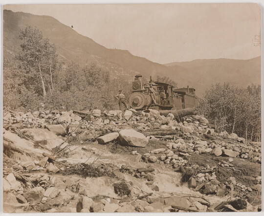 [Train near mountainside], 1914