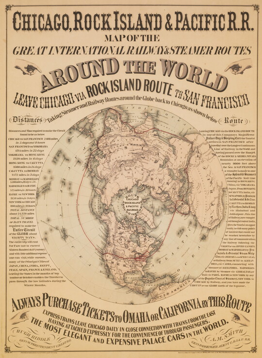 Chicago, Rock Island & Pacific R.R. Map of the Great International Railway & Steamer Routes Around the World, 1870