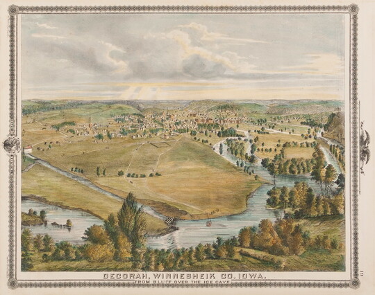Decorah, Winnesheik Co. Iowa. From Bluff over the Ice Cave, 1875