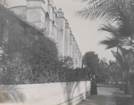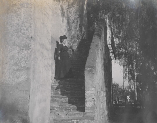 San Gabriel Mission, Outside Stairway, February 1904, 1904