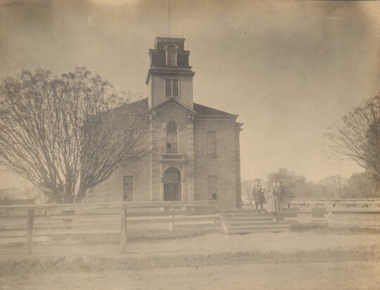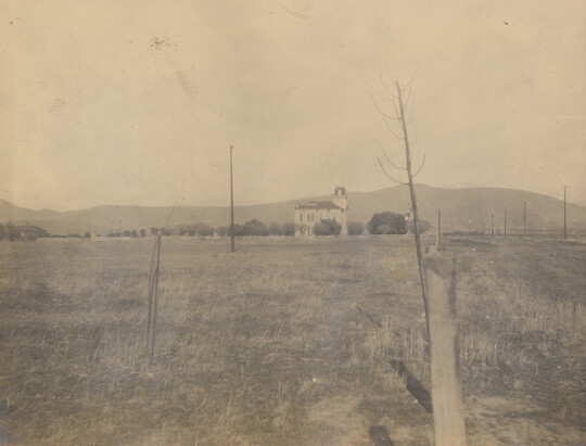 School House Sierra Nevada Mountains in Distance, Snow Capped, Lindsey, California, 1904