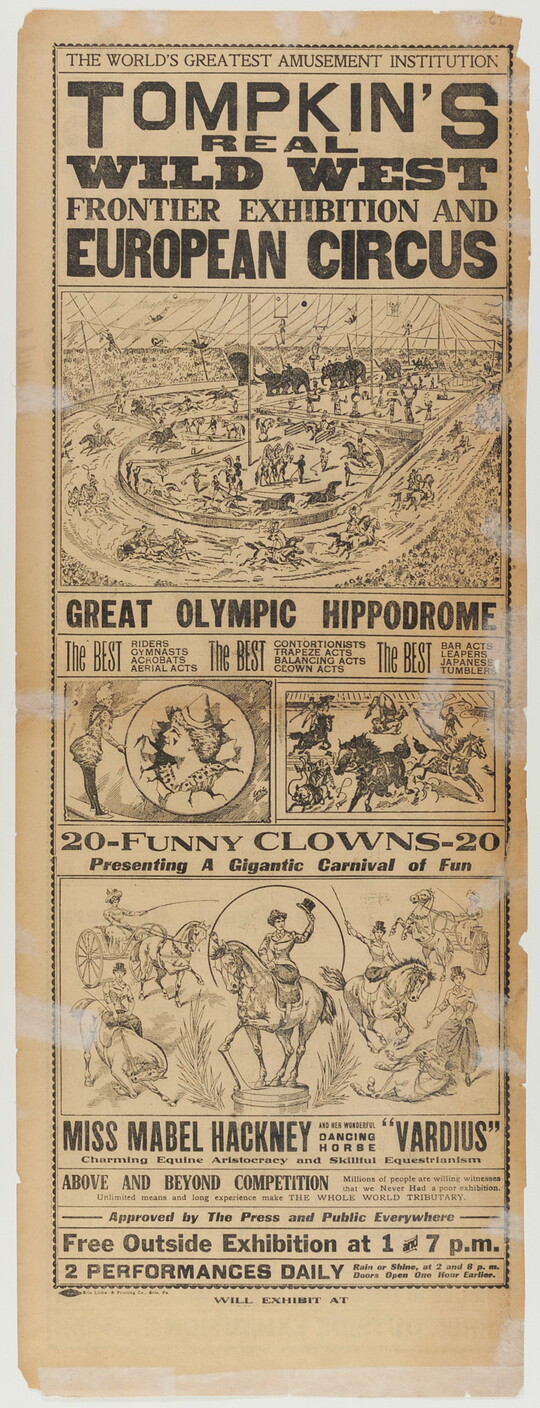 The World's Greatest Amusement Institution Tompkin's Real Wild West Frontier Exhibition and European Circus, ca. 1911