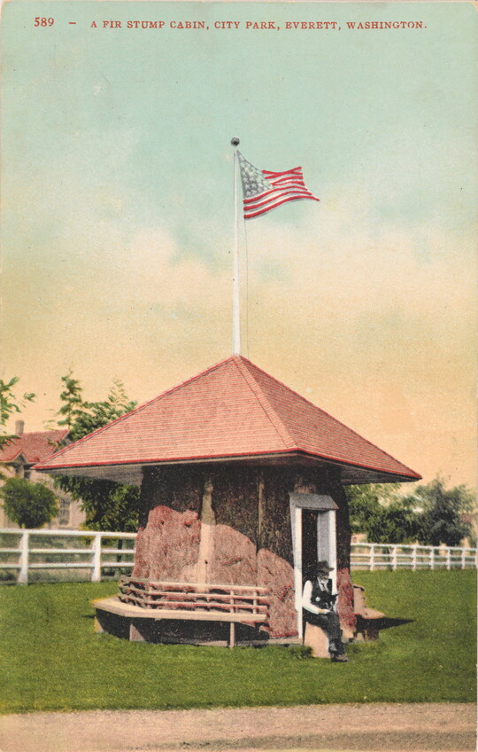 A Fir Stump Cabin, City Park, Everett, Washington, ca. 1907-1923