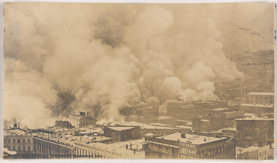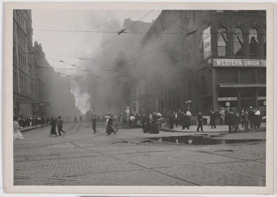 [View of street during fire in Minneapolis, Minnesota], ca. 1920