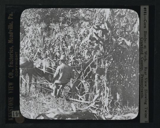 Corn Binder at Work. Rear View Showing Twine Box, Crawford County, Pennsylvania., ca. 1910