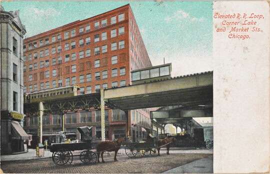 Elevated R.R. Loop, Corner Lake and Market Sts., Chicago, ca. 1907-1910