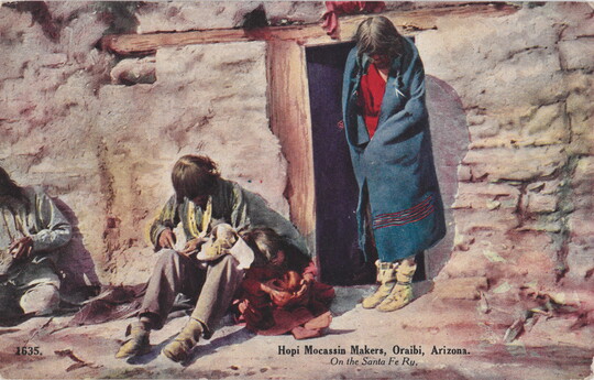 Hopi Mocassin [sic] Makers, Oraibi, Arizona, ca. 1910