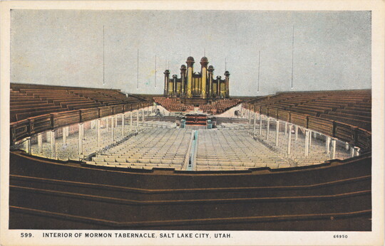 Interior of Mormon Tabernacle, Salt Lake City, Utah, ca. 1915