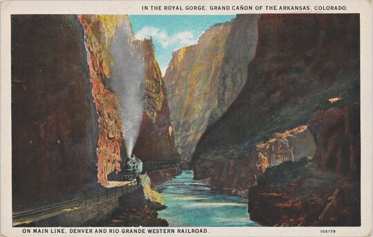 In Royal Gorge, Grand Canon of the Arkansas, Colorado, ca. 1915-1930
