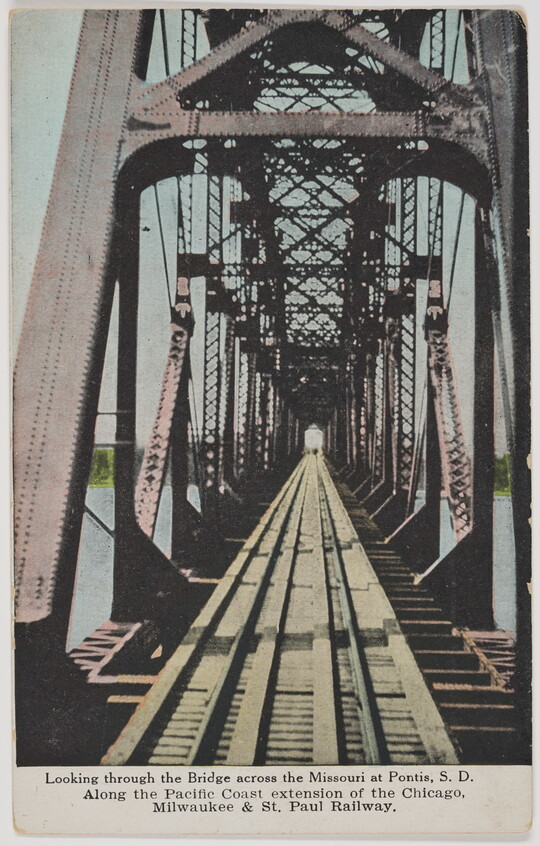 Looking through the Bridge across the Missouri at Pontis, S.D., ca. 1907-1915