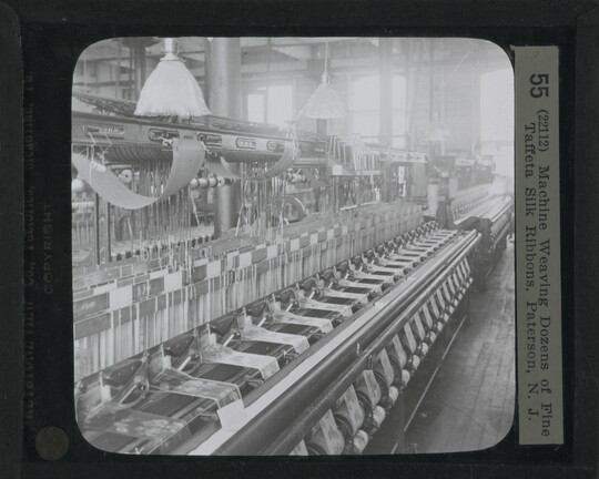 Machine Weaving Dozens of Fine Taffeta Silk Ribbons, Paterson, N.J., ca. 1900-1920