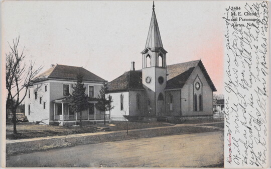 M.E. Church and Parsonage, Aurora, Neb., ca. 1907