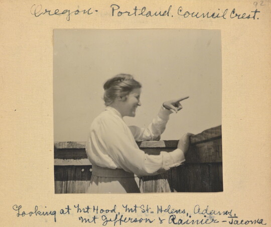 Looking at Mt. Hood, Mt. St. Helens, Adams, Mt. Jefferson & Rainier, 1920