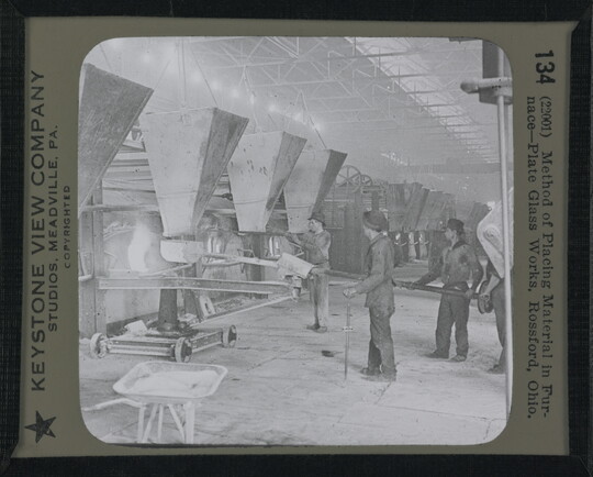 Method of Placing Material in Furnace, Plate Glass Works, Rossford, Ohio, ca. 1920s