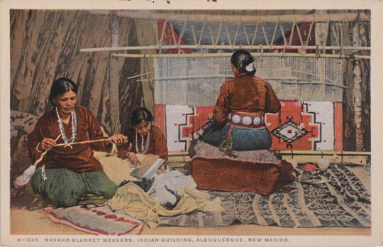 Navaho Blanket Weavers, Indian Building, Albuquerque, New Mexico, ca. 1900-1920