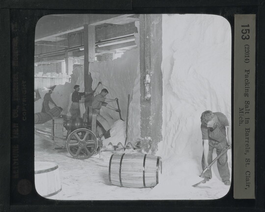 Packing Salt in Barrels, St. Clair, Mich., ca. 1915