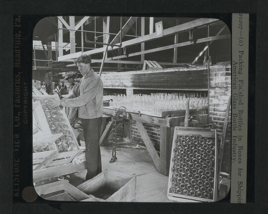 Packing Finished Bottles in Boxes for Shipping, American Glass Bottle Industry., ca. 1907