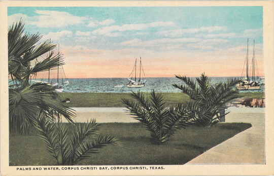 Palms and Water, Corpus Christi Bay, Corpus Christi, Texas, ca. 1910