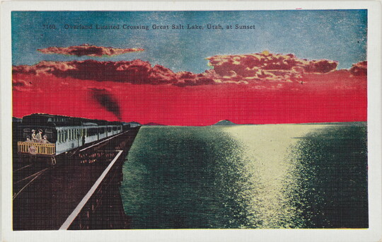 Overland Limited Crossing Great Salt Lake, Utah, at Sunset, ca. 1925