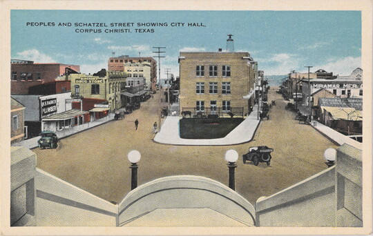 Peoples and Schatzel Street Showing City Hall, Corpus Christi, Texas, ca. 1920